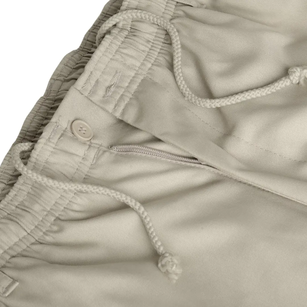 The rugby trouser has a fully elasticated waistband with button waist and zip fly, this is very useful if your weight fluctuates over time and also makes them very easy to get on and off.